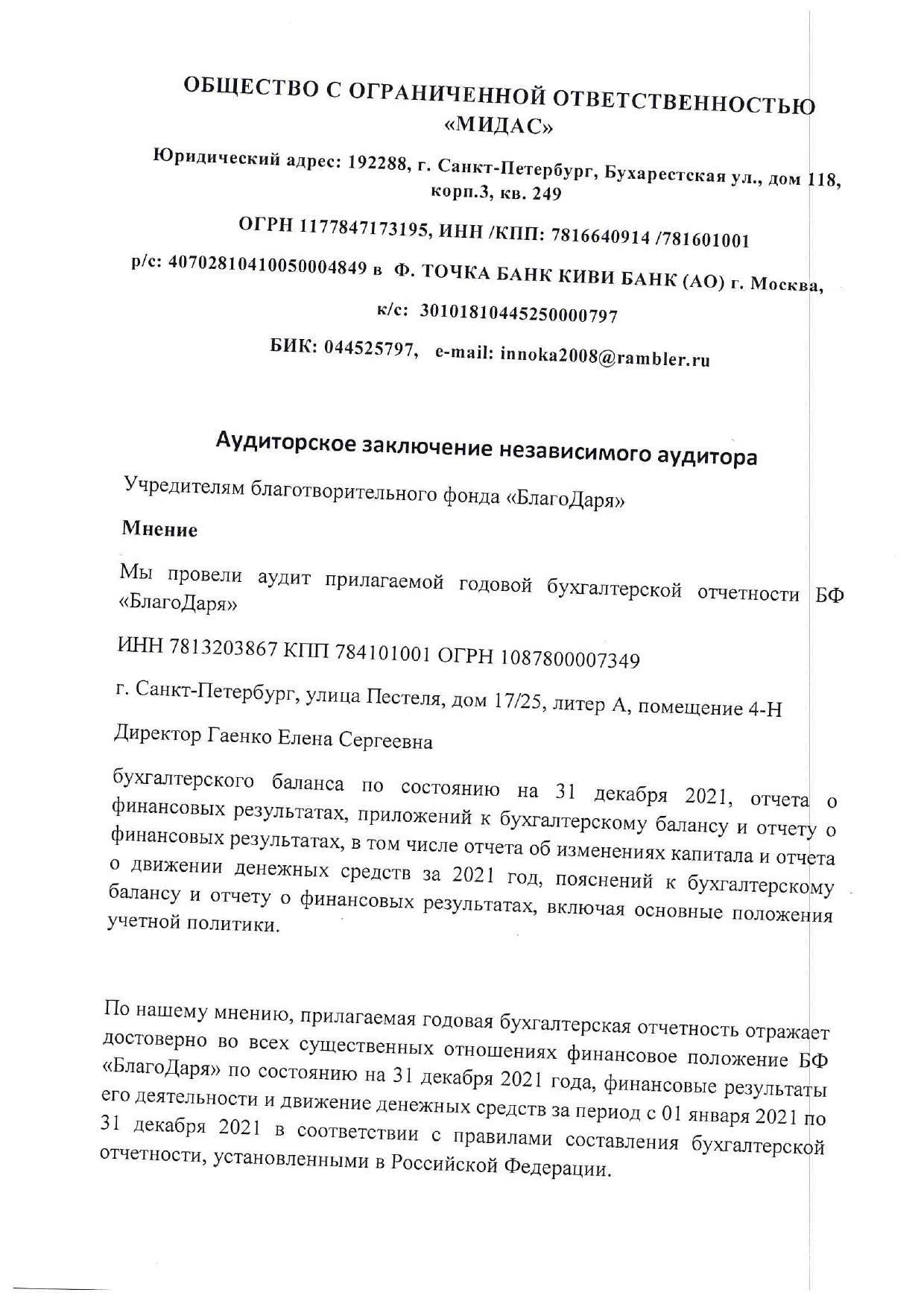 АУДИТОРСКОЕ ЗАКЛЮЧЕНИЕ 2021