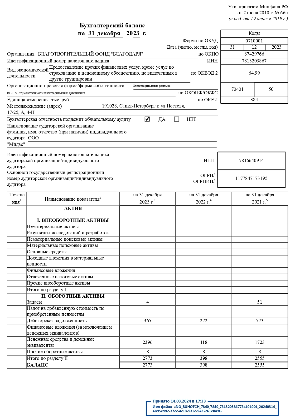 БУХГАЛТЕРСКИЙ ОТЧЕТ 2023