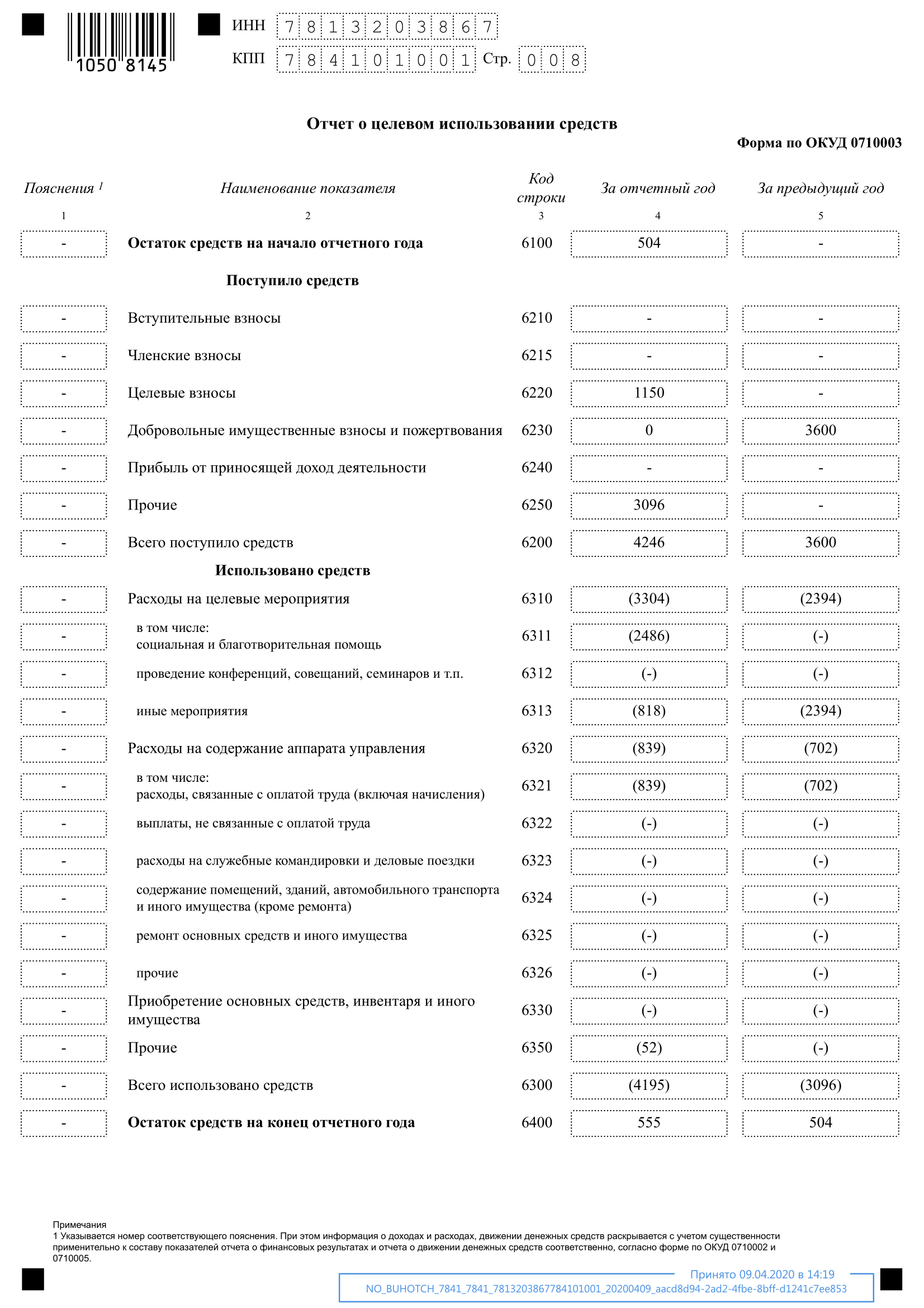 БУХГАЛТЕРСКИЙ ОТЧЕТ 2019
